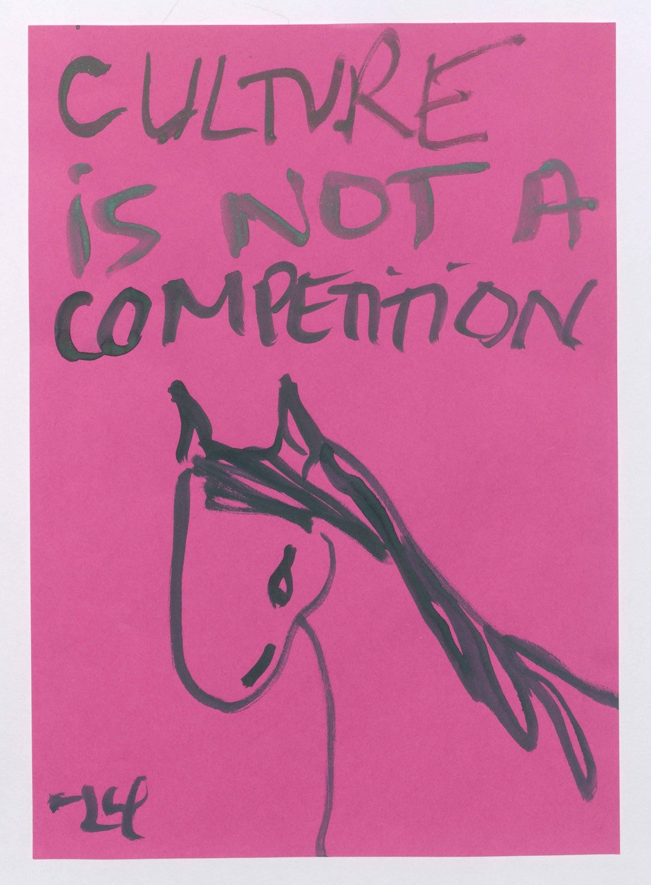 Sands Murray-Wassink is een schilder, schrijver, lichaamskunstenaar en parfumverzamelaar uit Amsterdam. Hoewel zijn werk lang over het hoofd werd gezien, is hij er een cultfiguur in de kunstscene. Al vele decennia werkt hij rond thema’s als gender, verlangen, intimiteit, geestelijke gezondheid en zelfontdekking. In de schemerzone tussen institutionele zichtbaarheid en geïsoleerde productiefasen, ontwikkelde Sands een geheel eigen visie op het maken en delen van werk. Sinds 2016 houdt hij zich vooral bezig met zijn Horse Drawings. Deze tekeningen – waarin zelden een paard te bespeuren is – hebben allemaal dezelfde titel en belichamen de spirit en elegantie van paarden, als symbool voor een persoonlijke reis naar genezing. Sands’ fascinatie voor dit motief verbindt de bredere thema’s van zijn kunst: genderfluïditeit, geestelijke gezondheid, feminisme en de transformerende kracht van kunst.